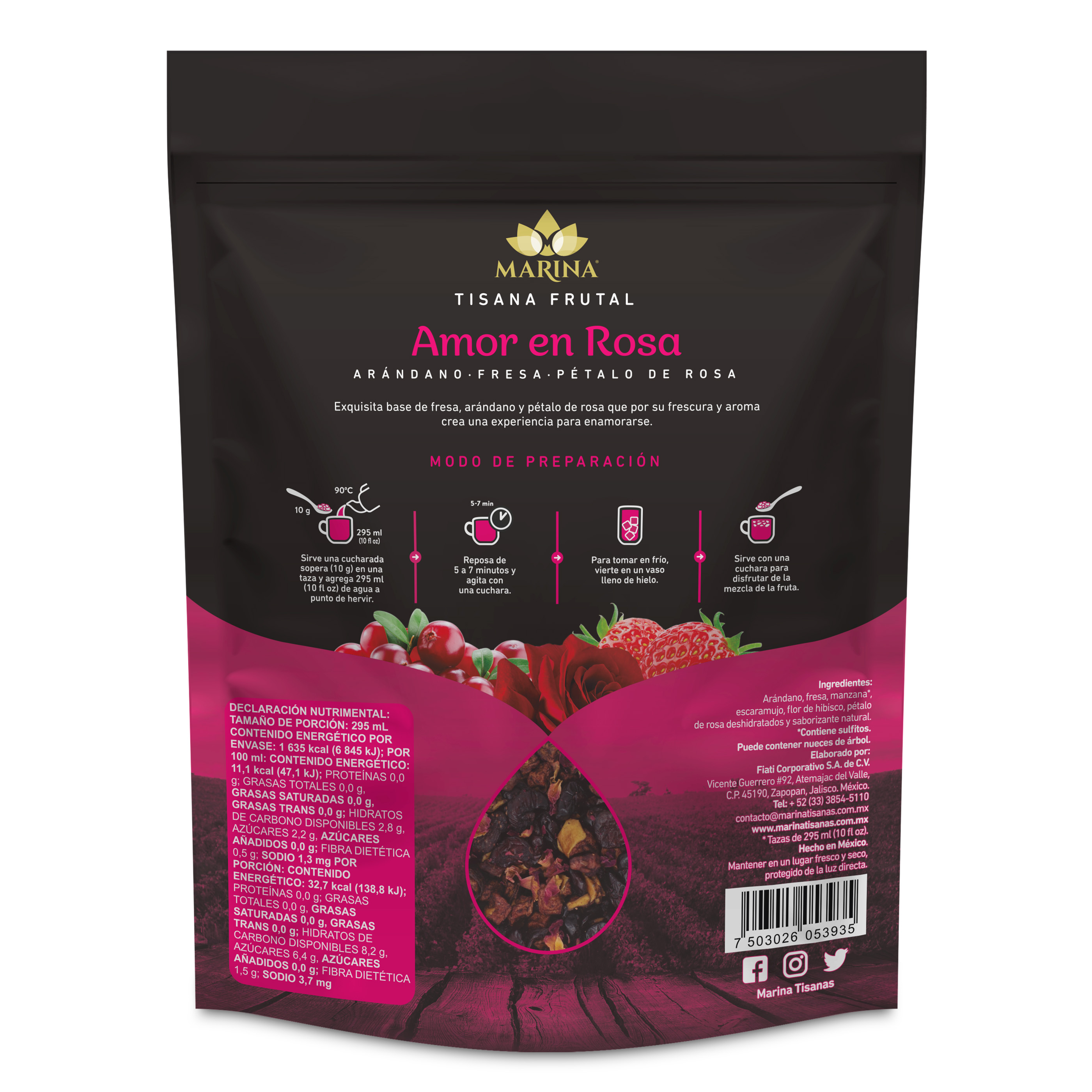 Tisana Marina De Fresa, Arándanos Y Pétalos De Rosa