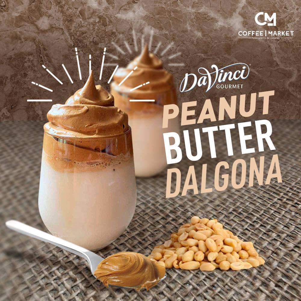 el vaso, poner 2-3 cubos de hielo, agregar 1 oz de DaVinci Peanut Butter y